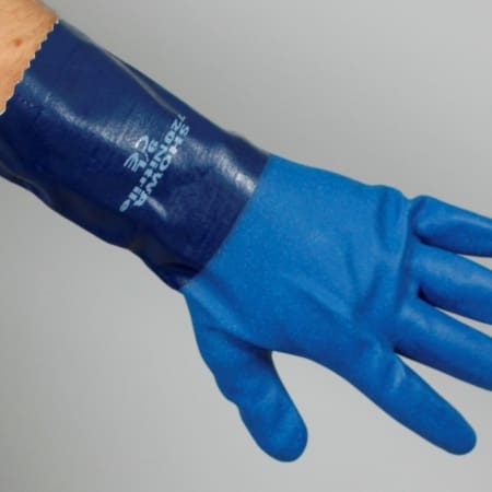 Smidig nitrilhandske med grov yta.